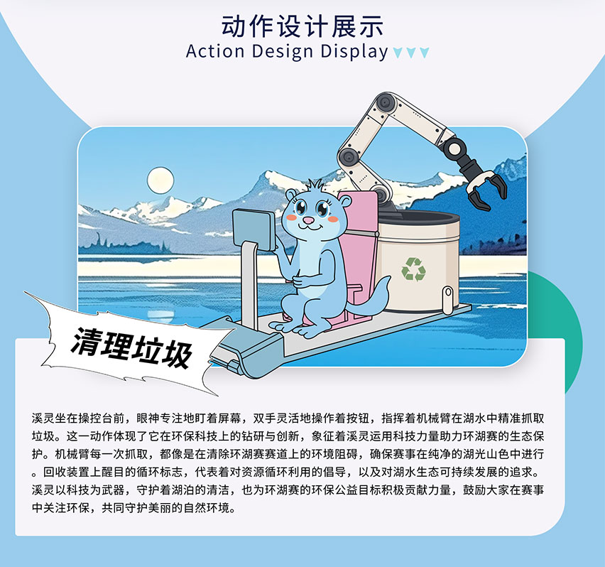 Xiling, this water-blue otter, is extremely fond of tinkering with technology, Protect water resources with detection equipment.
