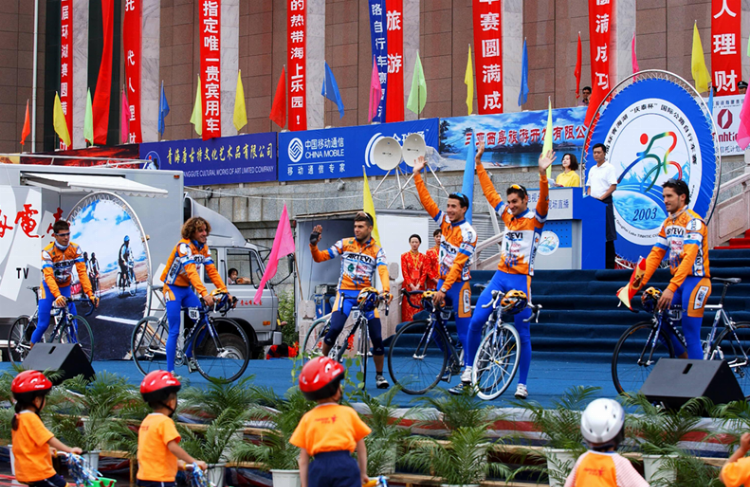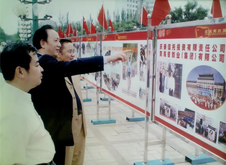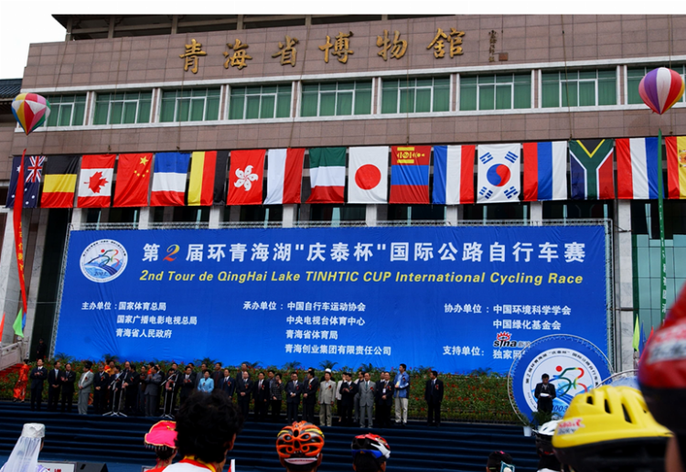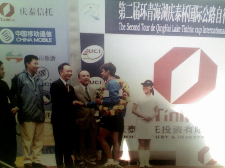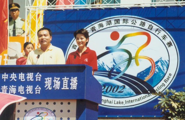 2003 The on-site arrangements for the opening ceremony of the second Tour of Qinghai Lake International Road Cycling Race are underway, Chairman Wu Ying addressed the government Outlook for the members of the leadership team "Tour of Lake" Development plan, Qingtai Trust and Investment Co. , Ltd. has continuously sponsored the competition