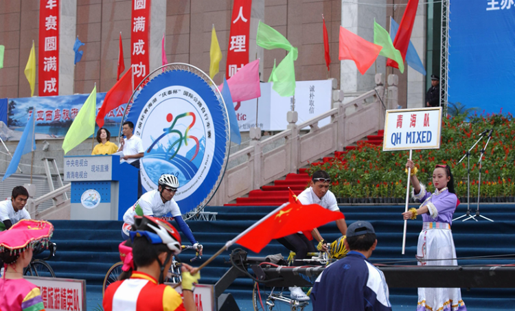 Chairman Wu Ying was with the main leaders and members of the first Tour of Qinghai Lake International Road Cycling Race